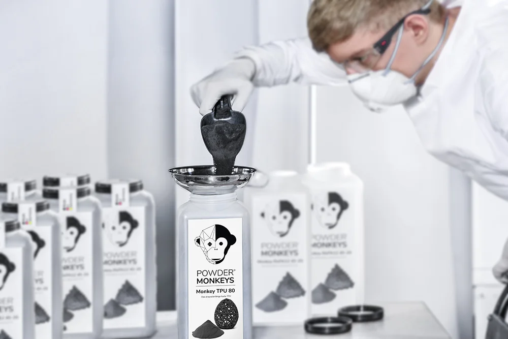 The PowderMonkeys TPU is not only suitable for SLS. As a result of the Materials Network and a very intensive research project in cooperation with the Fraunhofer IPA in Bayreuth the suitability for HSS was researched.